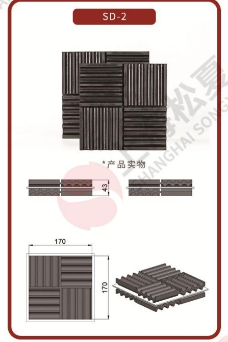 SD-2型橡膠減振墊采用優質橡膠為材料,有圓形四陷鏤空、剪切瓦楞形。